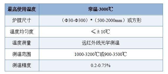 采用國(guó)外進(jìn)口保溫材料和先進(jìn)的爐膛結(jié)構(gòu),最高使用溫度高達(dá)3000℃。