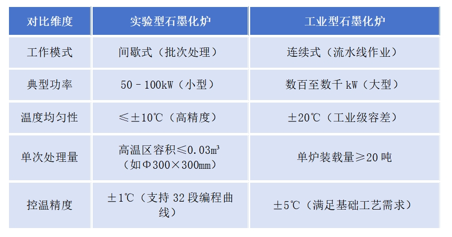 實驗型與工業(yè)型石墨化爐在應(yīng)用場景、設(shè)計參數(shù)及工藝控制等方面存在顯著差異,主要區(qū)別總結(jié)如下: